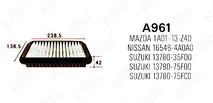 Фильтр воздушный A961 KITTO УЦЕНКА