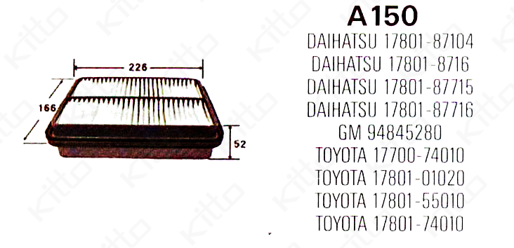 Фильтр воздушный A150 KITTO