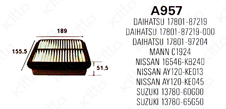 Фильтр воздушный A957 KITTO УЦЕНКА