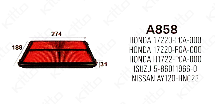 Фильтр воздушный A858 KITTO УЦЕНКА