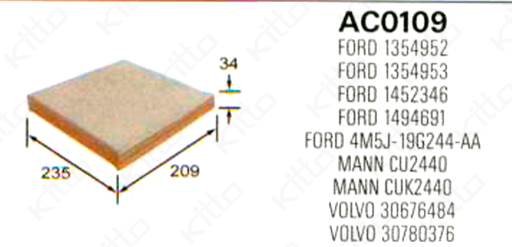 Фильтр салонный AC0109C KITTO угольный